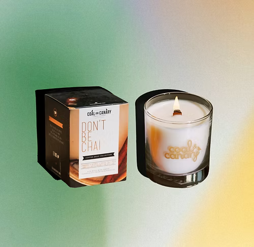 Don't Be Chai candle. Inspired by the sweet and spicy aromas of a chai tea latte.