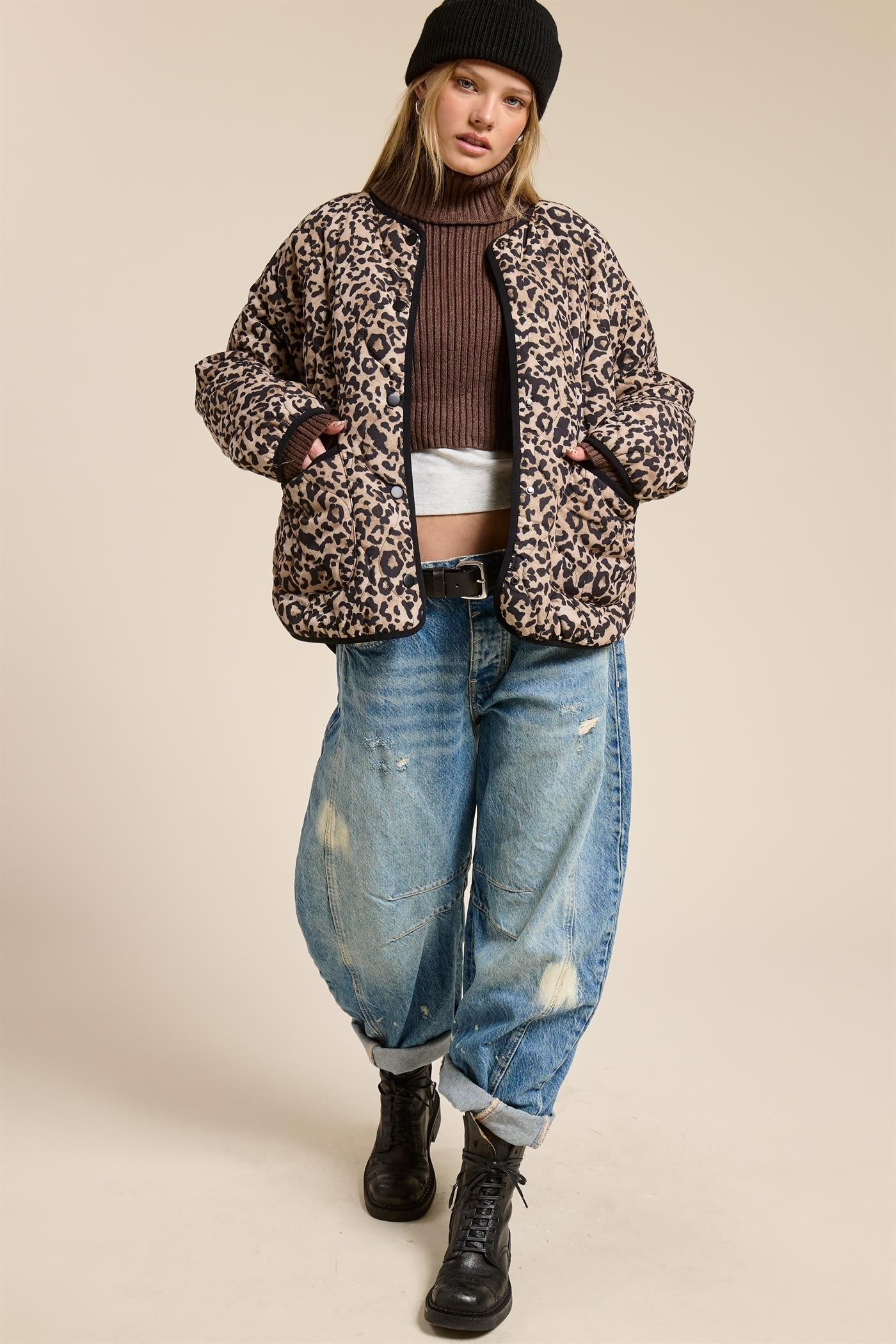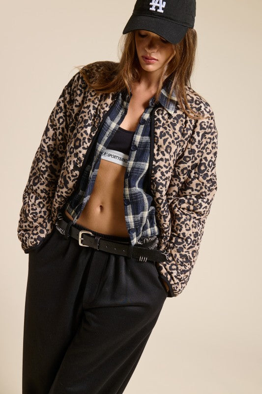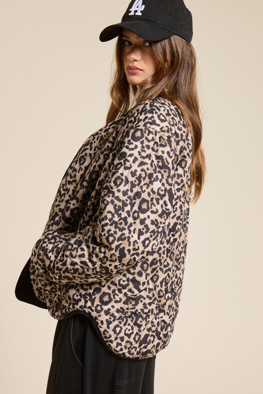 Featuring a bold leopard print, this long sleeve jacket is designed with a