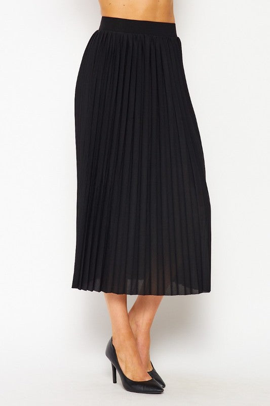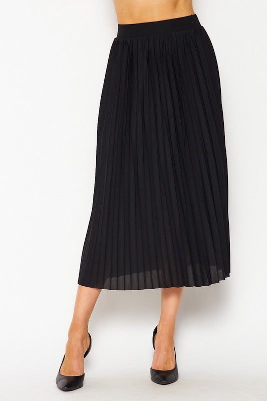 Twirl to the maxi This is a high-rise maxi skirt with pleats and an elastic waist.