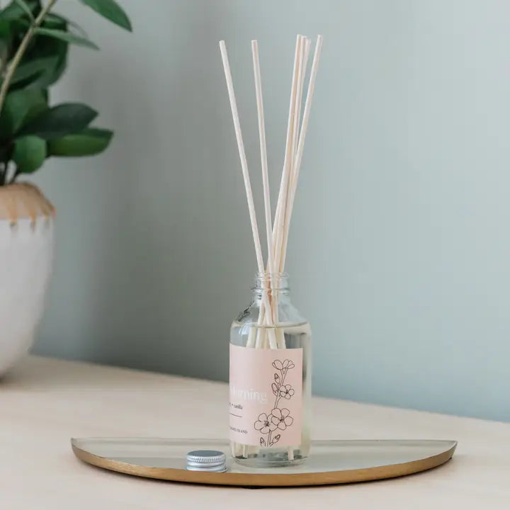 Sunday Morning smells of soothing, warm oatmeal with sugary notes of fresh honey and light almond. A comforting, calm scent to help you unwind not just on Sundays, but every day of the week. Notes: Almond • Fresh Honey • Vanilla Made with: Sustainable natural wooden reeds Phthalate free refined fragrance oil Recyclable glass bottles For those who wish for a continued scent naturally dispersed throughout a room without the use of a flame. Long-lasting, and a household favourite, diffusers last 6+ months. Care Instructions: Flip stems weekly to ensure scent stays fresh and fragrant in the home. Handmade By Caley Joy in Summerside, PE
