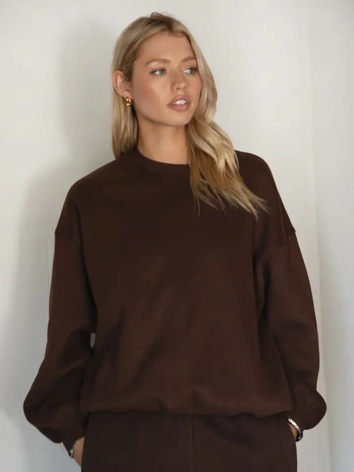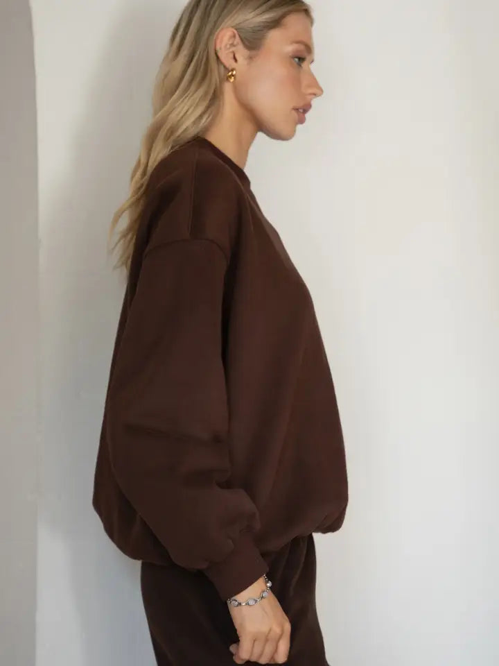 VARSITY Fleece Crew Neck Pullover Sweatshirt Relaxed Oversized Silhouette Ribbed Crew Neckline, Cuffs, and Hem Dropped Shoulder Fit for a Casual Look Soft Plush Fleece Fabric with Cozy Interior Smooth Exterior Finish with a Clean Drape Effortless Pull-On Design